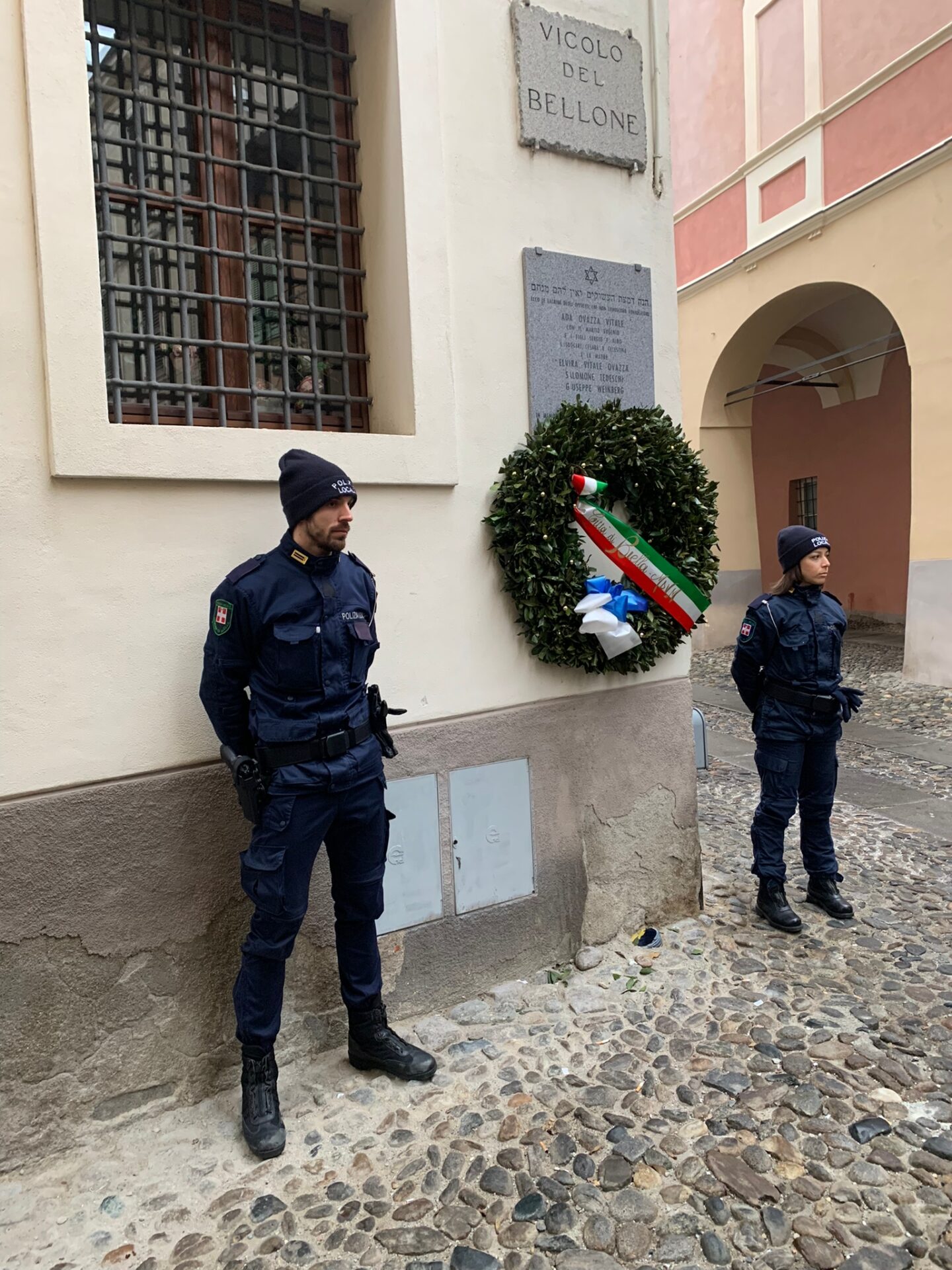 Oggi, venerdì 27 gennaio, in occasione della Giornata della Memoria, si è svolta a Biella la celebrazione della ricorrenza per rinnovare, in particolare verso i giovani, la memoria storica della Shoah, in ricordo dello sterminio e delle persecuzioni del popolo ebraico e dei deportati militari e politici italiani nei campi nazisti. Il sindaco Claudio Corradino ha iniziato la mattinata al Piazzo, all’ingresso di vicolo del Bellone, rendendo omaggio alla stele in memoria delle vittime della Shoah.