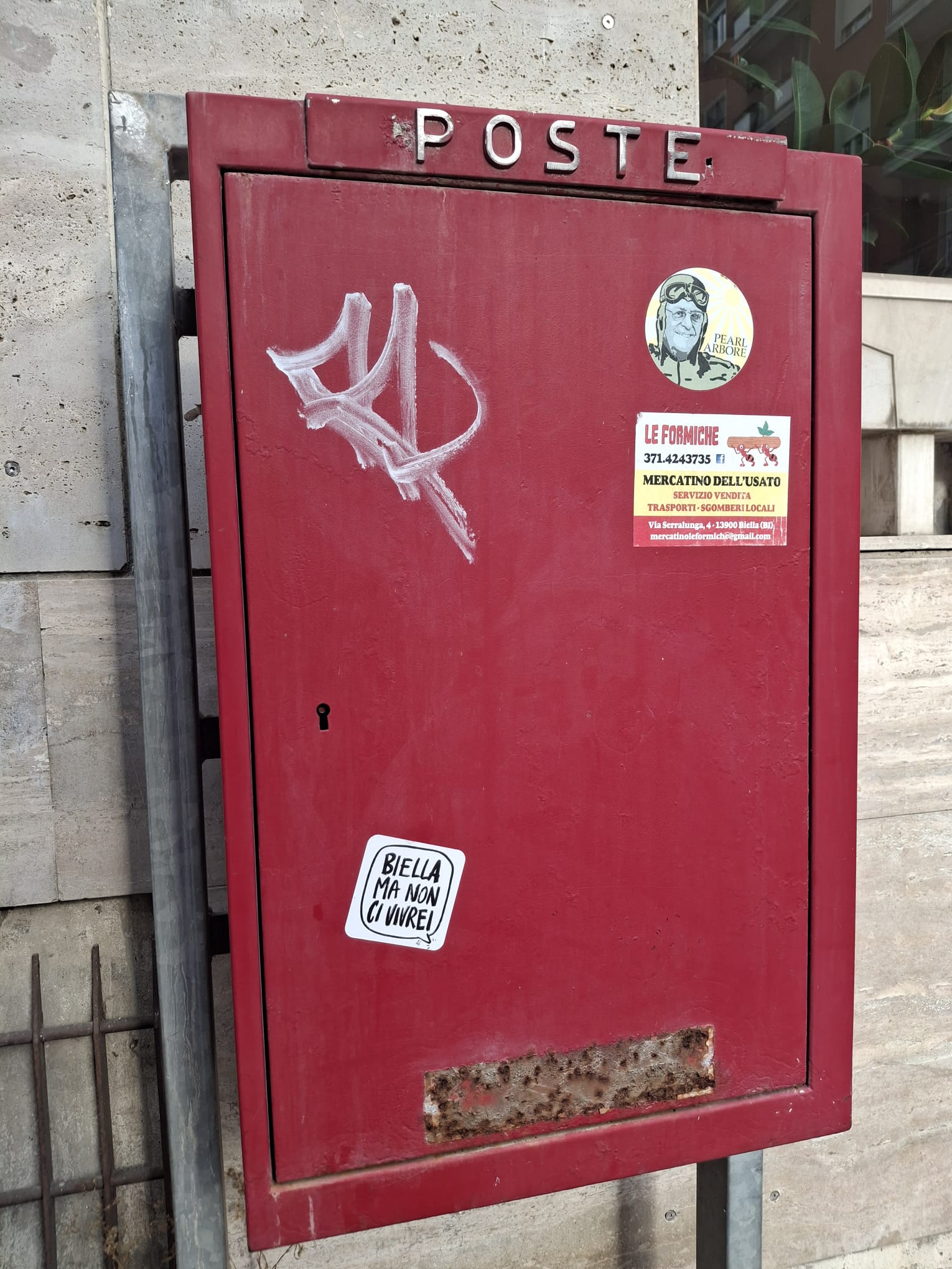 Biella, se vai al centro, incontri più stranieri che Italiani,sembra di essere in Africa, se vai in periferia, sembra di essere nei quartieri spagnoli a Napoli, le strade, sembra di guidare a Beirut, nei parchi e giardini, sembra di essere al mercato della droga di Quartoggiaro a Milano, si incontrano solo spacciatori di droghe varie…..per forza poi, mettono sti adesivi……..e chi li ha messi, non ha tutti i torti….o ha voluto fare sarcasmo provocatorio……