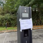 L’apparecchio per il pagamento è spento, così come diversi lampioni della zona. Probabile un guasto elettrico provocato dal maltempo