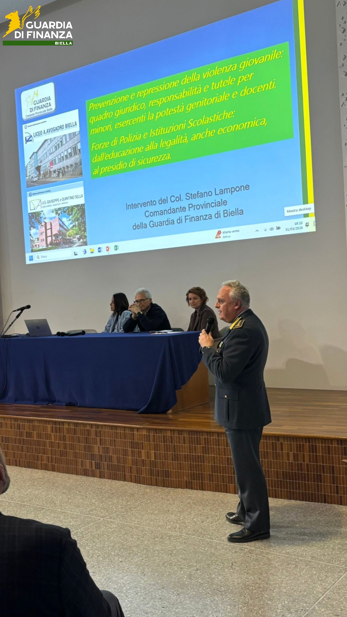 L’evento si inserisce in un ciclo di interventi, presso tutte le scuole secondarie di secondo grado della provincia, promosso dalla Prefettura e dall’Ufficio Scolastico Provinciale di Biella, con il contributo delle forze dell’ordine e dell’ASL di Biella, in attuazione della direttiva congiunta del Ministro dell’Istruzione e del Merito e del Ministro dell’Interno, del 28 gennaio 2026, in tema di rafforzamento delle azioni di prevenzione e contrasto di fenomeni di illegalità negli istituti scolastici.