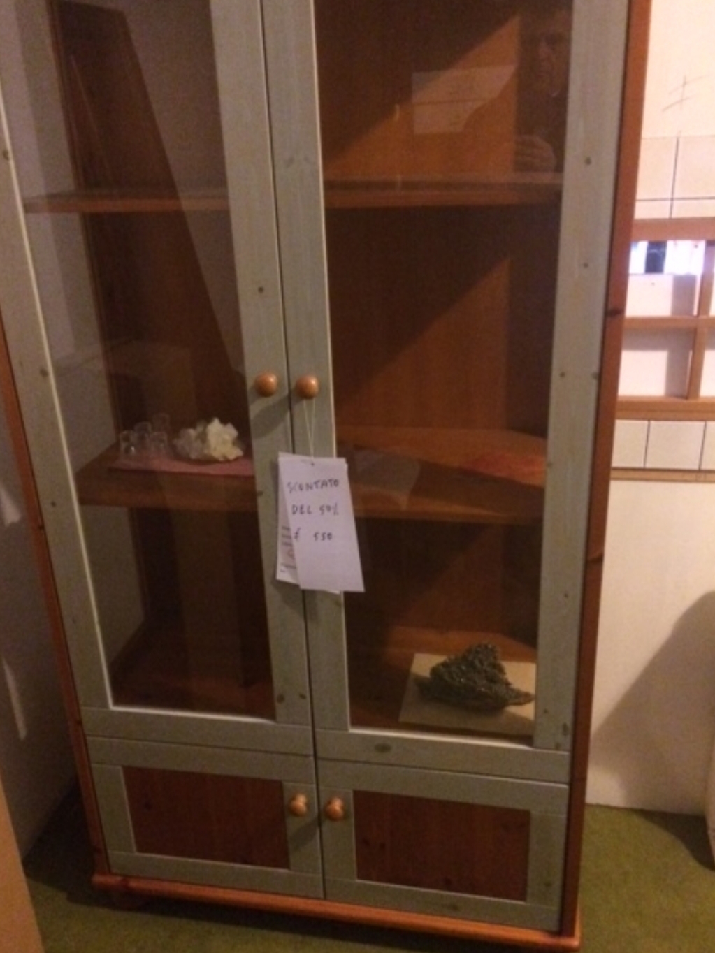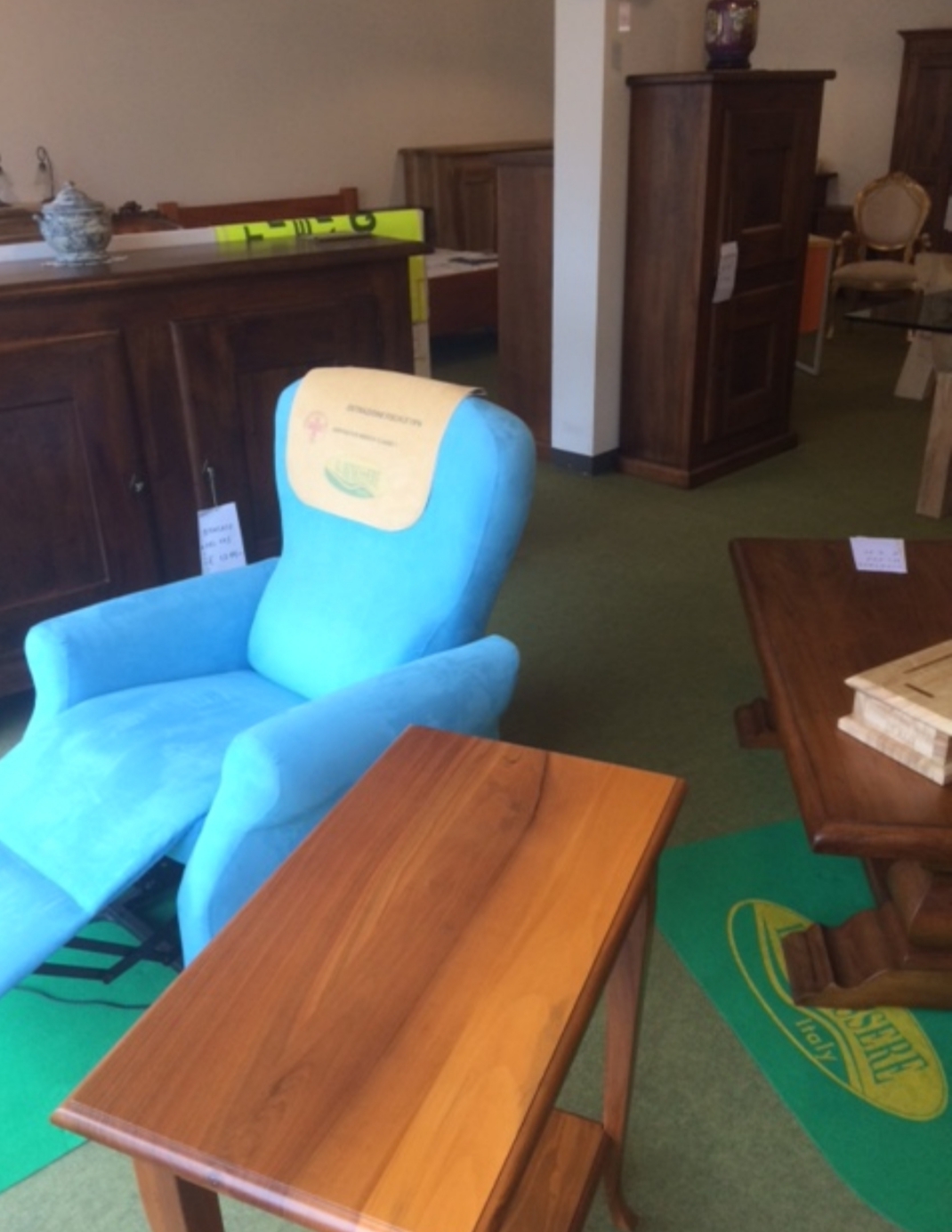 Ecco gli ultimissimi pezzi in vendita: lampadari classici, moderni e rustici; tre piantane; pochi lumetti in vendita a coppia; tavoli da pranzo – di cui due con piano in cristallo e altri due realizzati in legno di differenti tipologie; credenze per soggiorno in legno massello in varie misure (160 cm, 190 cm e 230 cm); due credenze colorate in legno massello bicolore; un armadietto porta abiti di colore rosso e giallo in noce e acero; un armadietto in teak con due ante e due ripiani; un armadio da ingresso con appendiabiti e due pratiche antine in noce; una vetrinetta artigianale in noce ad un’anta, una con i cassetti e due ante a vetro ed una con due ante a vetro e due antine basse in pino, color cognac e verdino; un comò piallato a tre cassetti; comodini da utilizzare anche come portatelefono; due letti matrimoniali – uno in ferro pieno e l’altro artigianale in legno d’acero color mattone; poltrone – una relax, una classica in pelle ed una poltroncina dorata imbottita; un mobiletto grezzo ad un’anta da utilizzare come porta tv e credenze in legno di noce grezze; tavolini artigianali – due quadrati, uno rettangolare finito e due sempre rettangolari non finiti; due librerie di medie dimensioni a giorno senza vetro; qualche specchio colorato classico o squadrato.