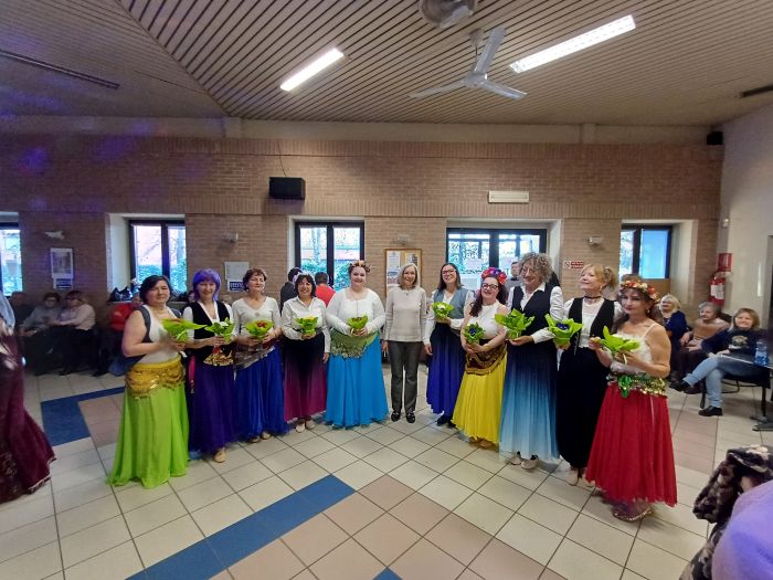 Ad animare il pomeriggio ci ha pensato la musica coinvolgente di Franco e i Colpi di Scena, che ha fatto ballare la sala in un clima di festa pura. Applauditissima anche la performance di Geniale Celentanino, capace di trascinare il pubblico con energia e simpatia. Non sono mancati i balli orientali e popolari proposti dai gruppi dell’UPBeduca, diretti con passione dalle docenti Cristina Martelli e Isabella Paoletti, che hanno offerto uno spettacolo elegante e coinvolgente. Ancora un momento speciale è stato donato dalla presenza delle tradizionali maschere biellesi, La Bela Ginevra e Conte del Thes, che con simpatia hanno portato in sala la storia e l’identità del territorio.