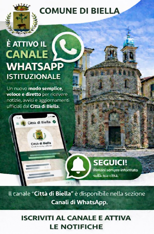 Apri WhatsApp → sezione Canali → cerca ‘Città di Biella’ e segui il canale.