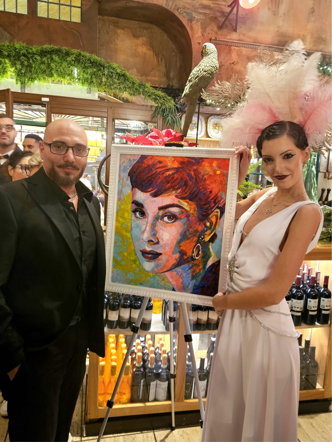 Mancuso ha presentato con grande successo la sua nuova collezione “Holiday’s Rome”, un omaggio vibrante e contemporaneo alla Città Eterna e al cinema immortale. Tra le opere esposte spiccano tre tele dedicate all’iconica scena in Vespa di Vacanze Romane, affiancate dai raffinati ritratti dell’indimenticabile Audrey Hepburn e di Gregory Peck. Una pittura intensa e suggestiva, intrisa di fascino cinematografico e di un impeccabile savoir-faire artistico, che ha conquistato pubblico e critica, confermando Mancuso come una delle voci più interessanti del panorama artistico nazionale.