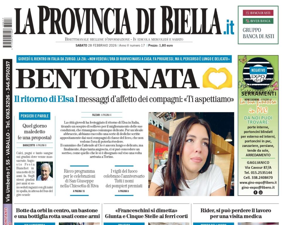 Ad aprire la prima pagina è la storia che più ha coinvolto la nostra comunità in questi giorni: il ritorno in Italia di Elsa, accolta da un’ondata di affetto dopo il lungo periodo di ricovero trascorso lontano da casa. Abbiamo raccolto i messaggi e le dediche dei compagni di classe, che non vedono l’ora di poterla riabbracciare: “Ci manchi, ti aspettiamo!”.