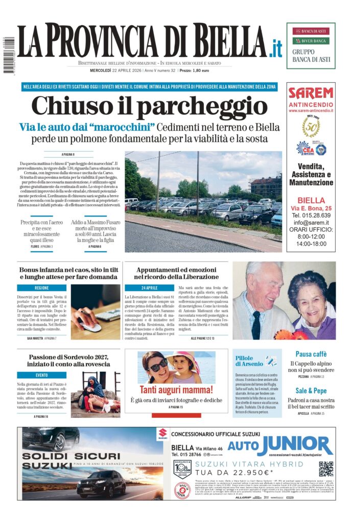 Continua a leggere le notizie de La Provincia di Biella e segui la nostra pagina Facebook