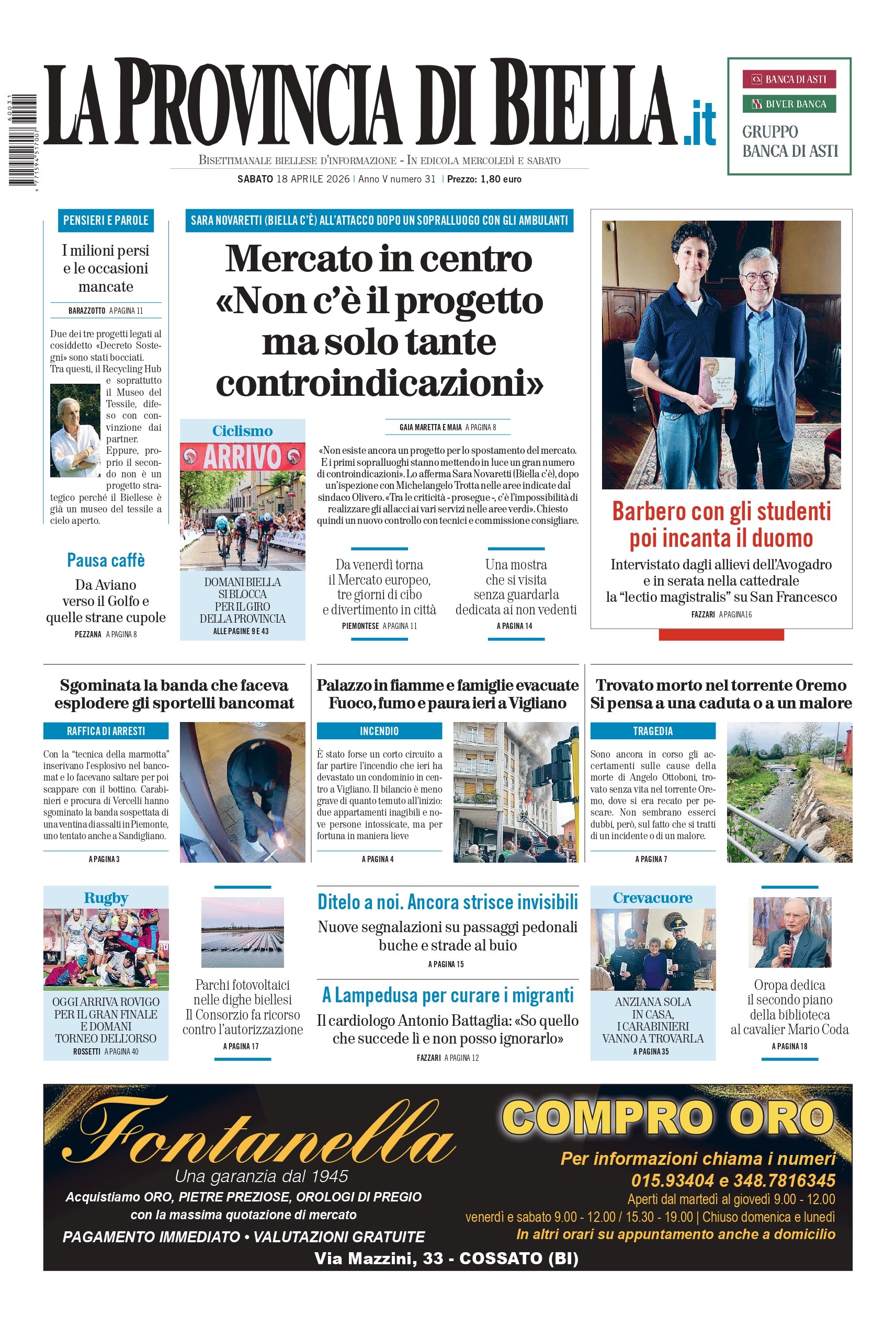 I titoli d’apertura de La Provincia di Biella.it di oggi. Rimanete informati, vi aspettiamo in edicola