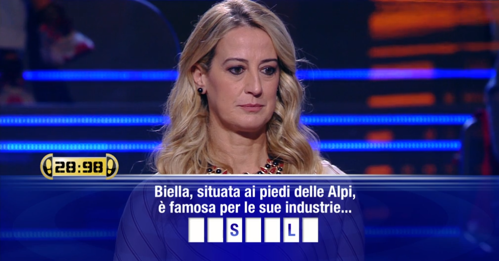 “Biella situata ai piedi delle Alpi è famosa per le sue industrie…”. La commerciante in gara non si è fatta trovare impreparata: tessili.