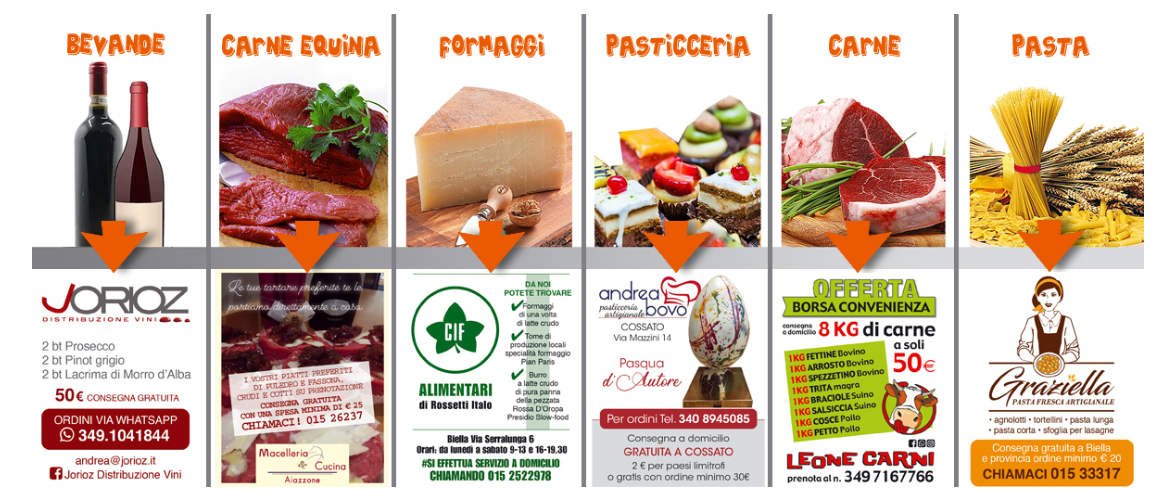 Ecco i prodotti che abbiamo scelto per Voi e che grazie alle tante attività sul nostro territorio vi verranno consegnati direttamente a casa senza dover alzarsi dal divano o correre nei supermercati facendo code spaventose e con la preoccupazione di mettere a rischio la nostra salute e quella degli altri.