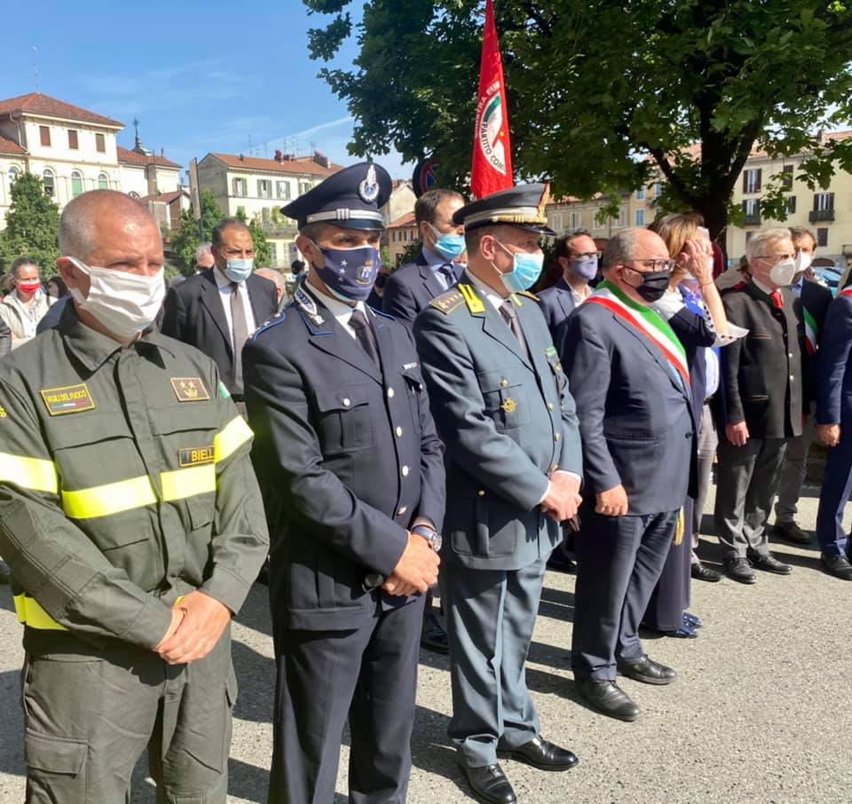 Ieri in piazza Martiri la commemorazione solenne e la deposizione della corona d’alloro al Monumento dei Caduti, alla presenza del sindaco Claudio Corradino, del prefetto di Biella Franca Tancredi, e del presidente dell’Associazione nazionale partigiani d’Italia Gianni Chiorino. È intervenuto anche il partigiano, combattente, Carlo Ganni ‘Gagno’.