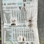 - La situazione della fermata successiva, al bivio, con il quadro degli orari semi distrutto e abbandonato a terra