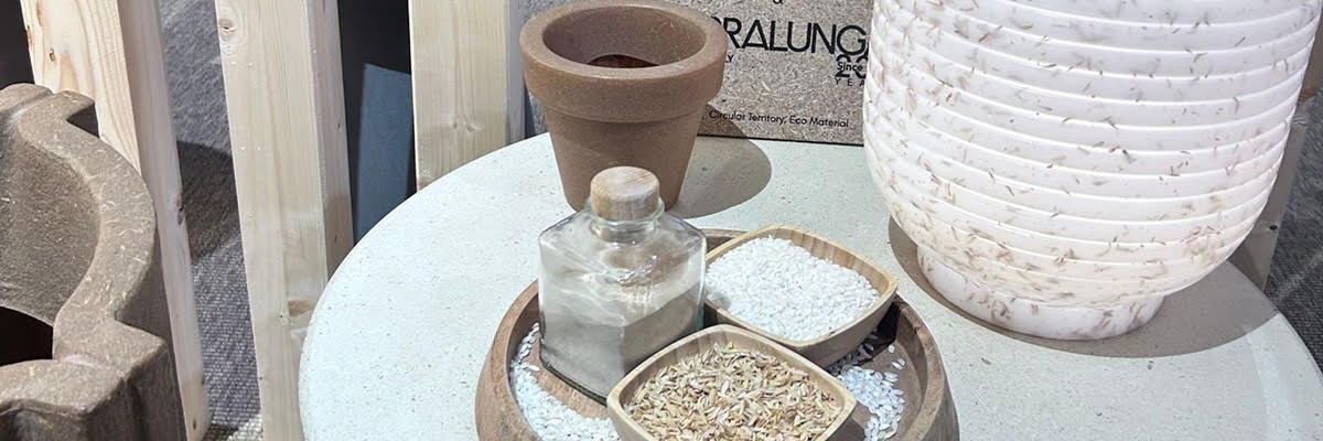 Cuore del progetto è la lolla di riso, uno scarto agricolo abbondante e finora poco valorizzato, che viene combinato con polimeri e plastica riciclata per dare vita a un nuovo materiale. Un materiale che diventa espressione di un “made in Biella” capace di dialogare con il made in Italy, intrecciando innovazione industriale e cultura progettuale. Serralunga 1825, azienda storica che è stata la prima in Europa a sviluppare la tecnologia dello stampaggio rotazionale e che negli anni Novanta ha trasformato vasi e fioriere in veri elementi di design per la casa e l’arredo urbano, collabora così con RiceHouse, pioniera nell’intuire le potenzialità degli scarti del riso e nel trasformarli in soluzioni per la bioarchitettura e l’edilizia sostenibile.