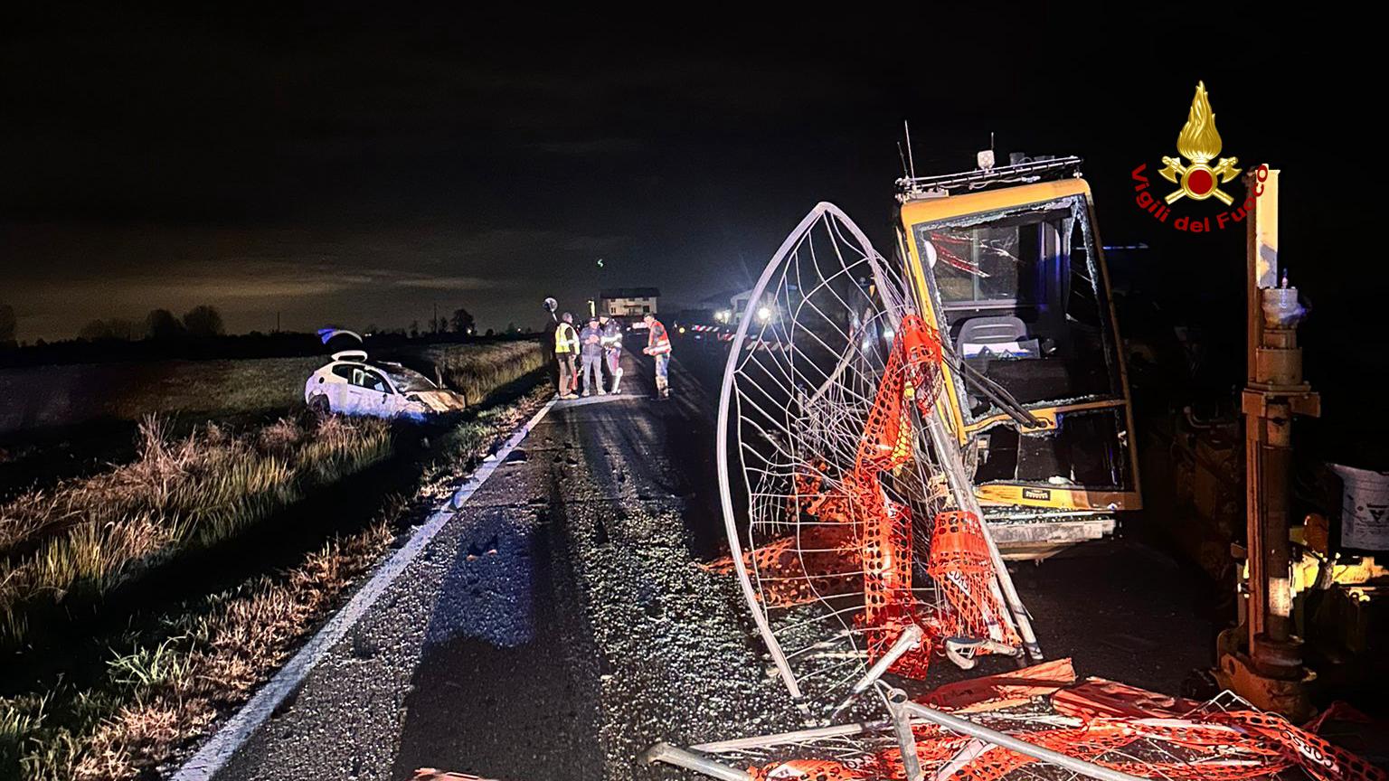 L’incidente ha visto coinvolta un’autovettura che, per cause ancora in corso di accertamento da parte delle autorità, è andata a travolgere dei mezzi da cantiere che si trovavano a margine della carreggiata.