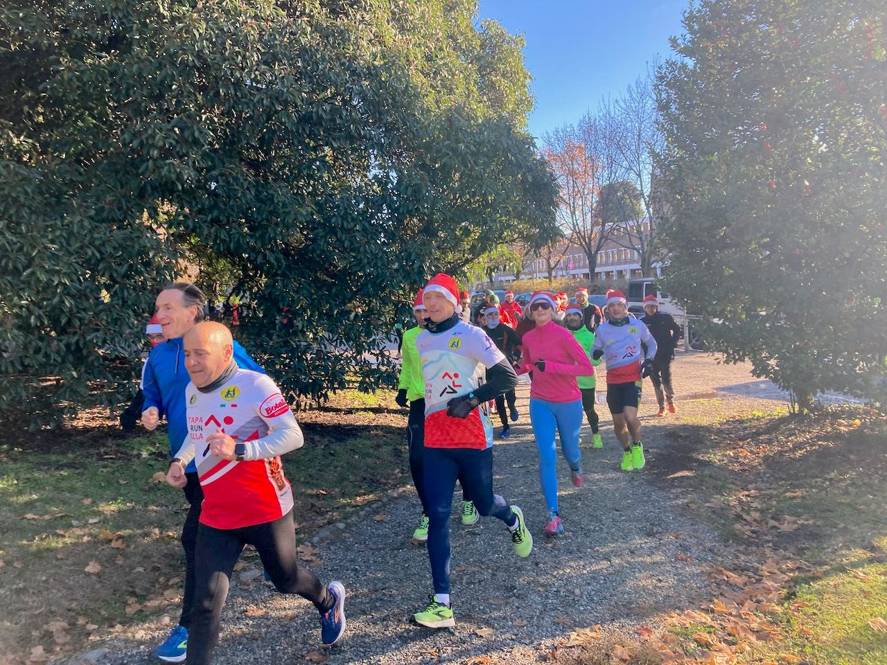 È stato spettacolare il colpo d’occhio alla partenza con il gruppo, preceduto dalla staffetta degli amici motociclisti, che è diventato una macchia rossa sulle strade della città, grazie ai cappellini di Babbo Natale forniti dall’organizzazione agli iscritti. Non c’era classifica come è prassi nelle non competitive, ma c’è chi ha voluto tenere alto il ritmo: Marco Leonardi è stato il più veloce a raggiungere il traguardo di via Malta, davanti a Policarpo Crisci. E dopo l’arrivo, microfono alla mano e seduti vicini, hanno fatto partire un coro su una vecchia canzone di Adriano Celentano. La prima donna all’arrivo è stata la giovanissima Giulia Ferrari.