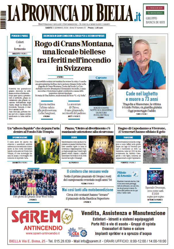 Non mancano poi le notizie di cronaca e quelle dal territorio. Un’edizione ricca di approfondimenti, che racconta Biella e il suo tempo con attenzione e spirito critico.