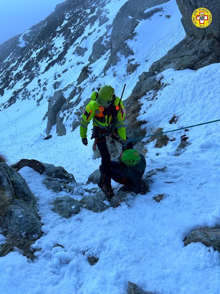 Nonostante la neve e il ghiaccio, era riuscita ad arrestarsi appena sopra un salto di roccia riportando un infortunio di lieve entità. La zona era interessata dalla nebbia, per cui una prima squadra del Soccorso Alpino ha raggiunto Oropa per valutare la situazione. Grazie a un leggero miglioramento del meteo, l’eliambulanza è stata mandata in loco e ha sbarcato al verricello 3 tecnici circa 150 metri a valle del punto in cui si trovava la donna.