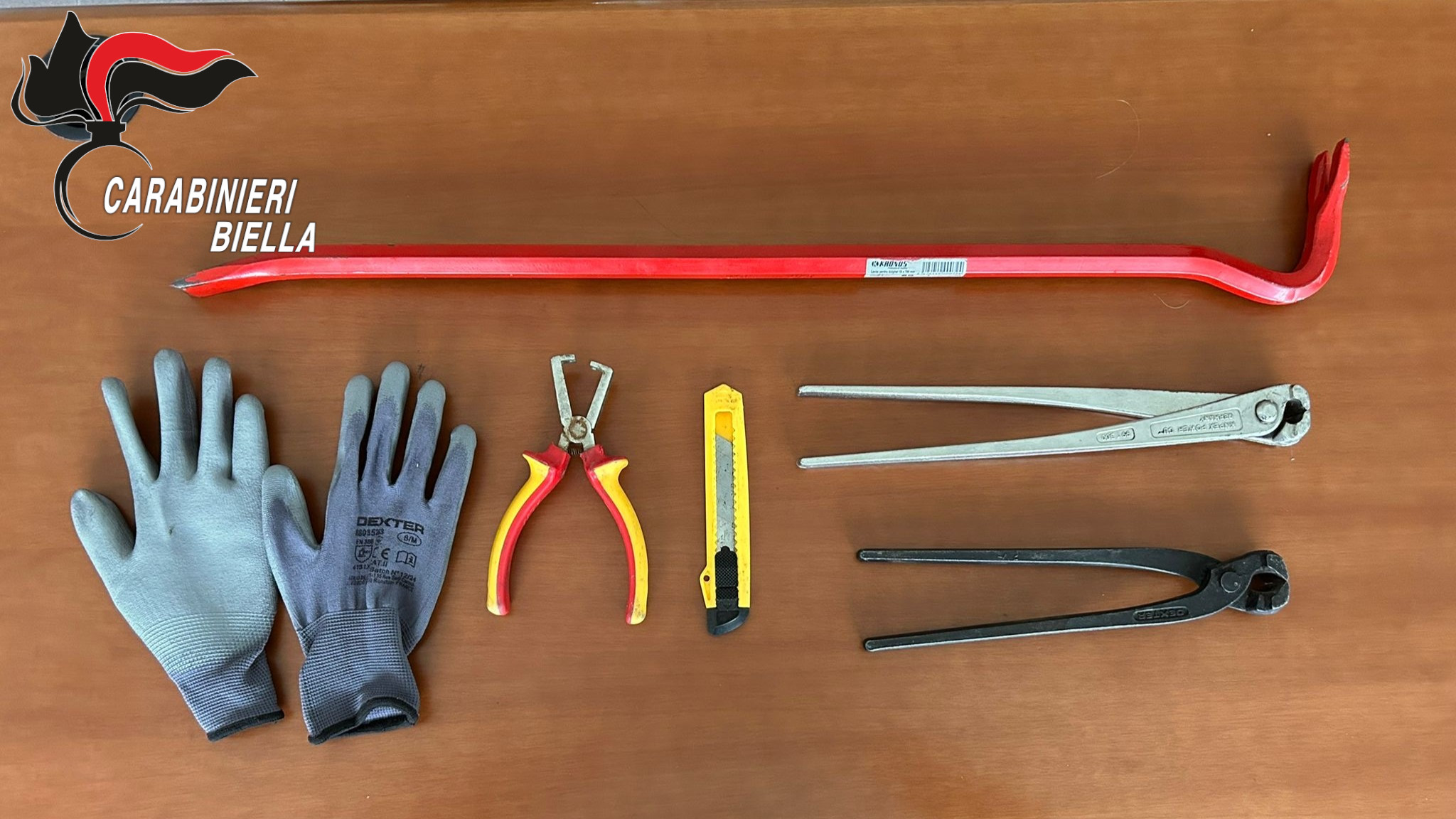 I militari hanno perquisito i tre uomini ed il furgone, trovando guanti da lavoro ed una serie di arnesi da scasso, una pinza spela fili, tenaglie, un taglierino, un palanchino in metallo lungo 70 centimetri. Tutti accuratamente nascosti in una cavità di uno sportello. I tre sono stati quindi denunciati alla Procura della Repubblica di Biella per possesso ingiustificato di chiavi o grimaldelli e poi, visti i fatti ed i loro precedenti è stata proposta alla Questura l’emissione nei loro confronti della misura di prevenzione del Foglio di Via Obbligatorio per impedirgli di fare ritorno in questa Provincia, misura immediatamente emessa.