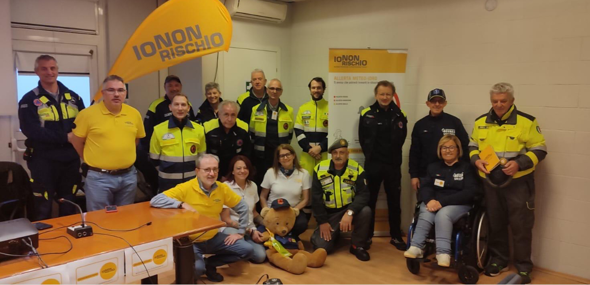 “Io Non Rischio” è una campagna di comunicazione pubblica promossa dal Dipartimento Nazionale di Protezione Civile, che ha l’obiettivo di accrescere la consapevolezza individuale e collettiva sui rischi naturali e antropici presenti in Italia. La campagna promuove comportamenti e azioni utili a prevenirli o a ridurne le conseguenze. I volontari formati sono chiamati a diffondere sul territorio buone pratiche di prevenzione e gestione delle emergenze, attraverso l’organizzazione di punti informativi, la distribuzione di materiale illustrativo e attività di divulgazione rivolte alla popolazione.