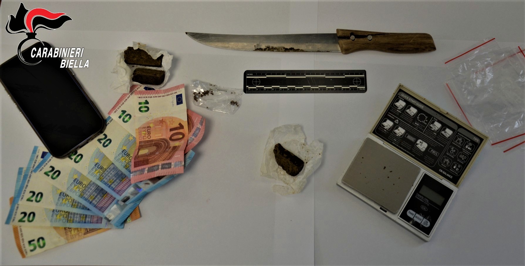 L’atteggiamento sospetto dell’uomo ha indotto i militari a eseguire una perquisizione personale, che ha permesso di rinvenire: • 35 grammi circa di sostanza stupefacente del tipo hashish; • La somma in contanti di 170,00 euro, ritenuta provento dell’attività illecita. L’ispezione è stata immediatamente estesa all’autovettura in uso al giovane, ove all’interno i Carabinieri hanno scoperto e sequestrato materiale vario per la pesatura e il confezionamento delle dosi, confermando l’ipotesi della detenzione ai fini di spaccio. Il giovane è stato denunciato in stato di libertà alla Procura della Repubblica presso il Tribunale di Biella. Tutto il materiale, il denaro e la droga sono stati posti sotto sequestro in attesa delle disposizioni dell’Autorità Giudiziaria. L’attività odierna si inquadra nella più ampia strategia di controllo del territorio volta a garantire la sicurezza dei cittadini e a smantellare le reti di micro-spaccio nelle aree urbane.