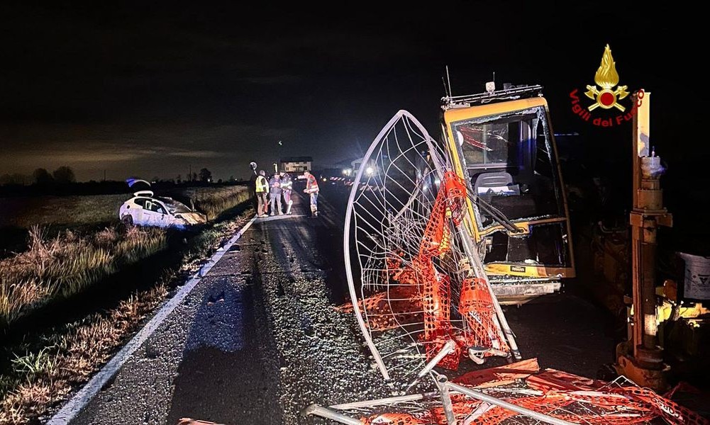 Secondo una prima ricostruzione, l’autovettura avrebbe impattato contro i mezzi di lavoro, per ragioni che restano ancora da chiarire. Dopo la collisione, il veicolo ha terminato la sua corsa in un campo adiacente alla strada, riportando danni rilevanti.