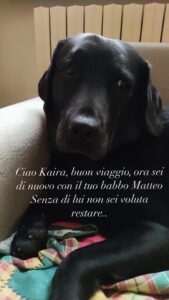 «Ci sono amori così puliti e profondi… – commenta commossa Tiani -. Era un cane davvero speciale, proprio come Matteo. Kaira si è ammalata con lui ed è andata via insieme a lui».
