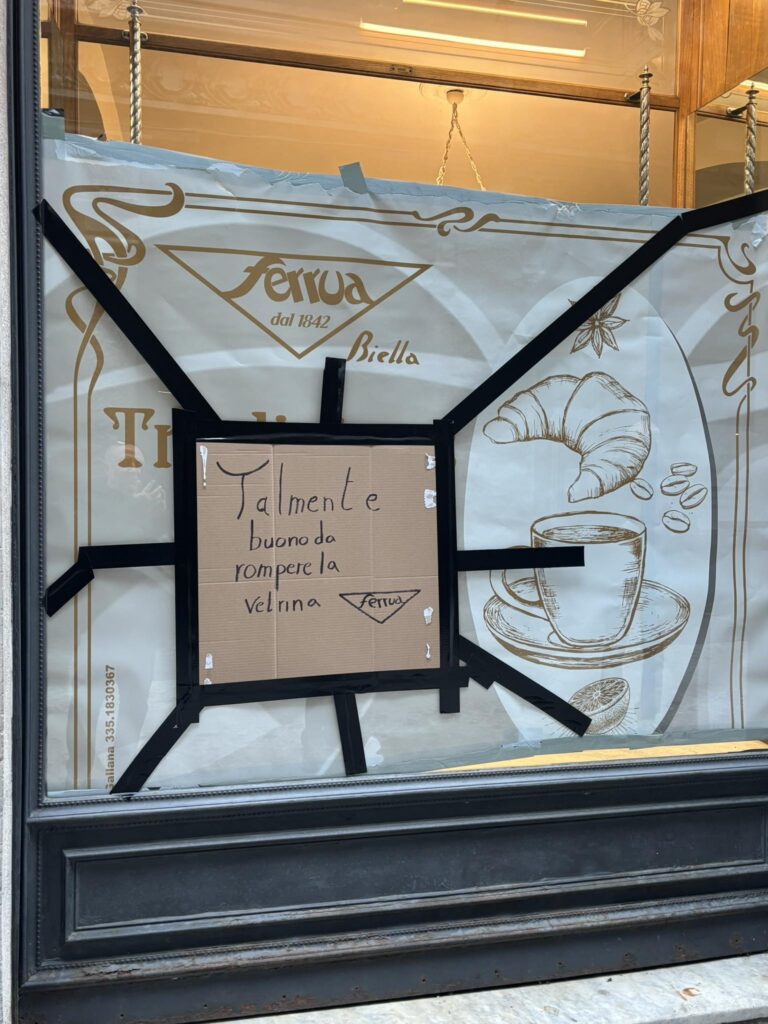 L’ironia di Ferrua dopo gli atti vandalici: “Talmente buono da rompere la vetrina”