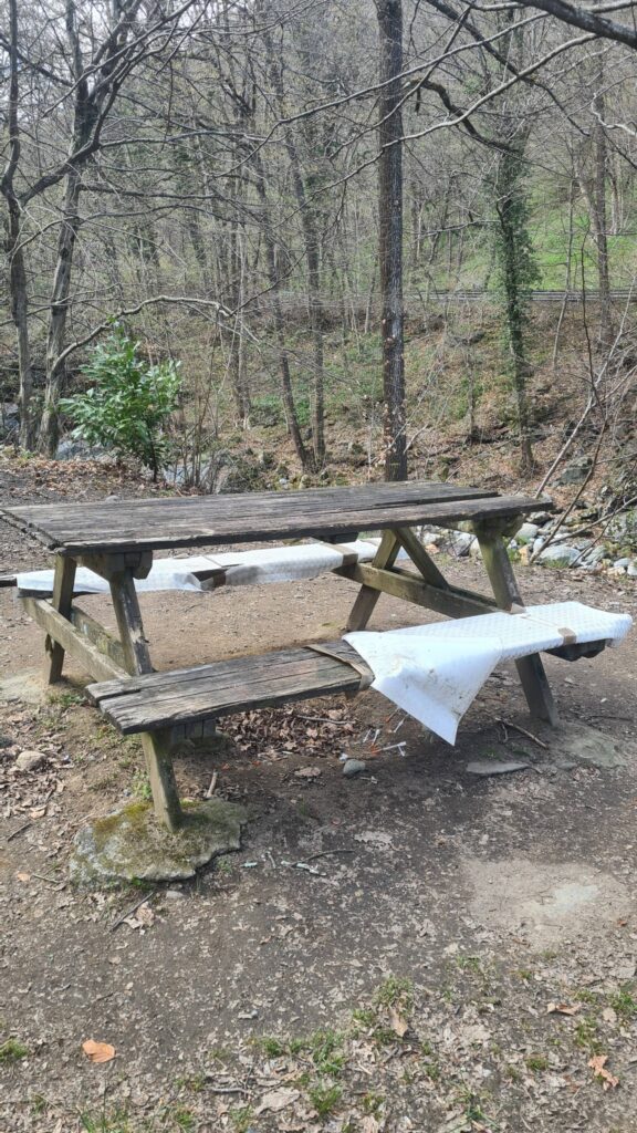 Ad attenderla ha trovato una sorpresa parecchio sgradita: “Volevo fare un picnic arrivando all’area attrezzata dopo l’acquedotto ma, giunti sul posto, ho visto qualcosa che non avrei mai voluto vedere, sotto il tavolo che c’è per il picnic, una marea di siringhe. Lo scorso anno, di questo periodo, c’erano famiglie con bambini a fare scampagnata, possibile che ora ci sia questo degrado? Colpa del nuovo ponticello che dà facile accesso a drogati in cerca di luoghi? Che tristezza, davvero”.