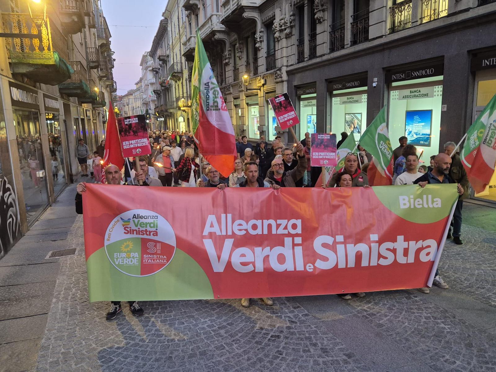Per questo venerdì e sabato siamo scesi con ancora più convinzione in piazza, alla fiaccolata cittadina organizzata dall’Anpi con cartelli e adesivi per ricordare che “ieri partigiani e oggi antifascisti” e nella mattinata di sabato alle celebrazioni in Valle Cervo e a Donato Lace per confluire, nel pomeriggio, alla grandissima manifestazione di Milano insieme a tutta la comunità politica di Alleanza Verdi e Sinistra con in testa il Segretario nazionale di Sinistra italiana Nicola Fratoianni e la nostra parlamentare europea Ilaria Salis.