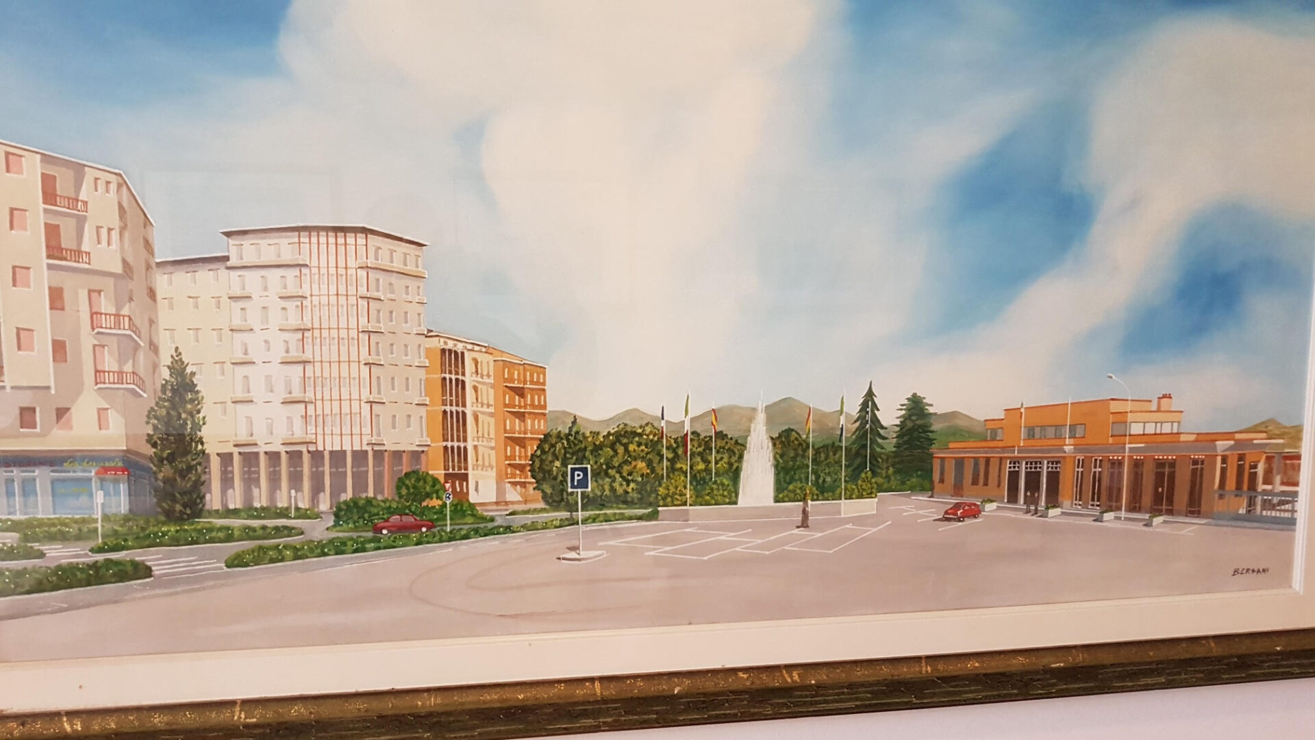 Oggi vorrei fare con voi il “quadro ideale” della situazione per Biella. Ma proprio di quadro si tratta in pennelli e cornice (vedi foto 1) di una Biella “ideale” rappresentata vent’anni orsono dal maestro e pittore biellese Bersani e che, da allora, ho l’onore di poter esporre in una saletta nei locali della mia attività.