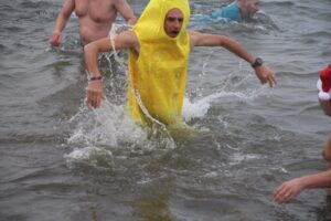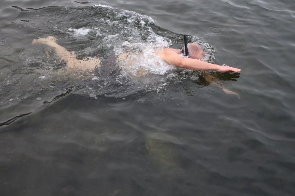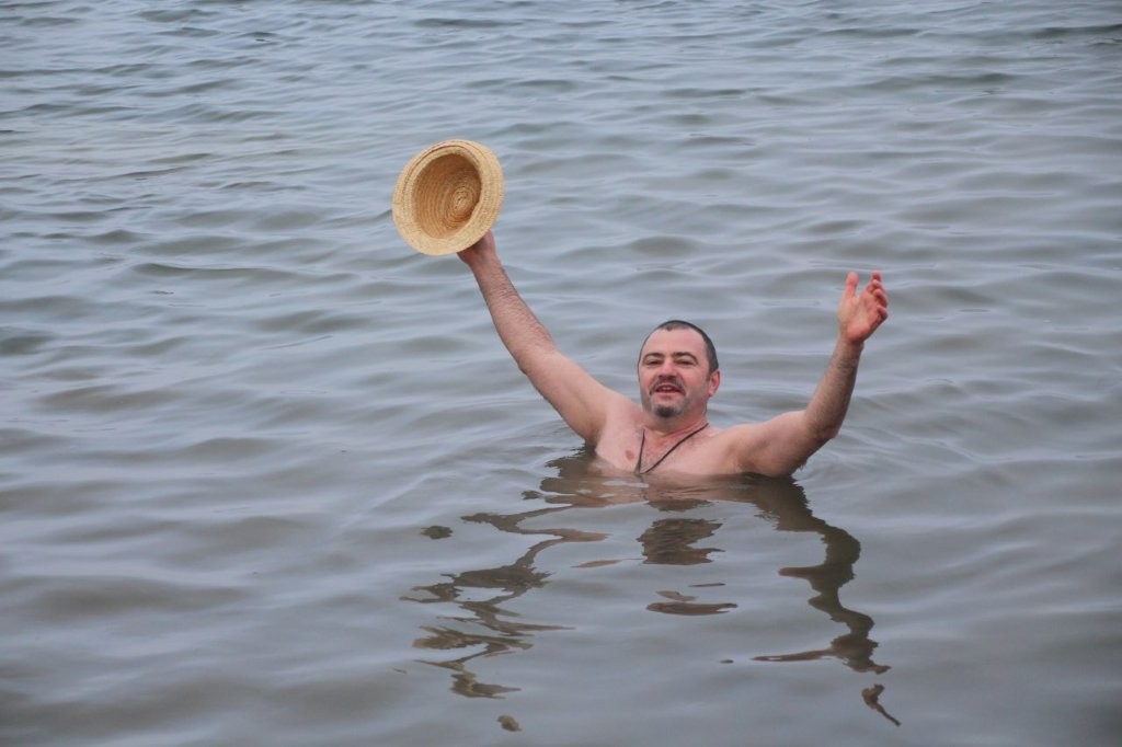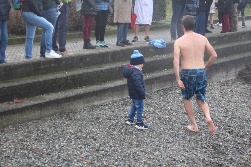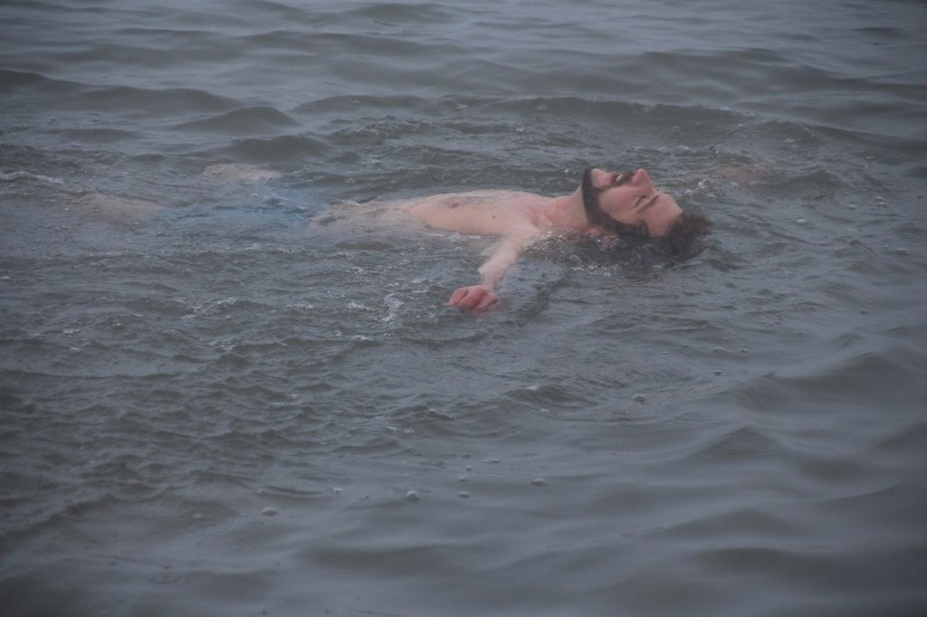 Il primo a tuffarsi è stato un uomo di 76 anni, rimasto in acqua per circa 7 minuti.